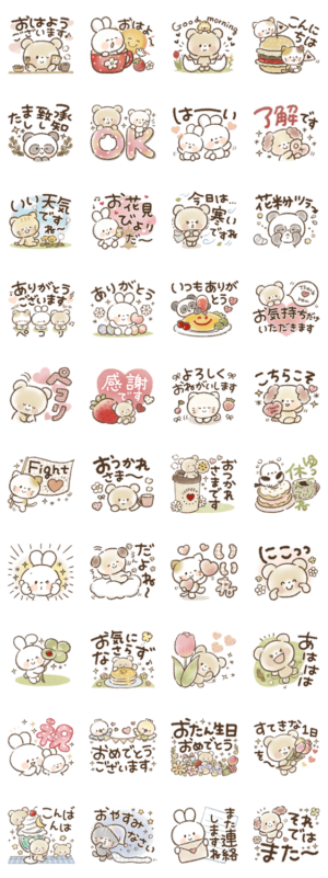 春に可愛く使えるどうぶつスタンプです♪/くま/うさぎ/猫/犬/鳥/パンダ/挨拶/敬語/誕生日yopink より発売