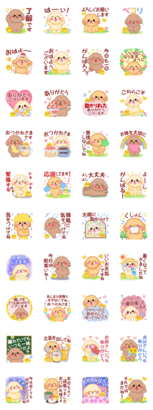 春から初夏の日常や、思いやり、励ましに使えるかわいいトイプードルのスタンプです。めぐみん より発売