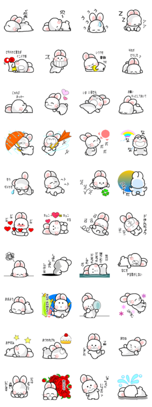 いつも元気なふわふわモコモコ白うさぎの番外編。なんだか急に何もしたくなくなってぐったりこんなおはうさスタンプです。ohausa より発売