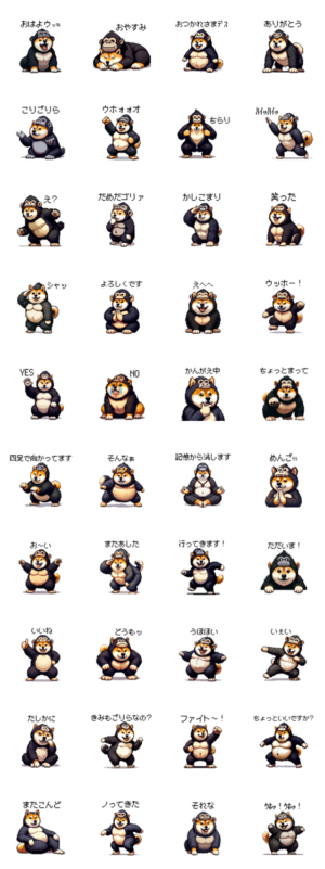 ゴリラになったふとっちょ柴犬 スタンプ画像一覧
