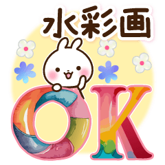 水彩画♡うさぎさんのデカ文字スタンプ スタンプ画像一覧