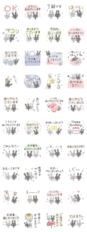 なかよしモノトーンうさぎさんのスタンプです。敬語でどなたにも送れます。 うさぎ/挨拶/敬語/大人/母の日/お祝い/御礼/毎日