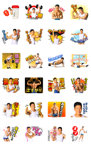 トレーニング好きや筋肉好きにもってこいのスタンプです。スタンプのモデルになっている人物のキャラクター性も損なわず筋トレ好きが日常使いしやすいデザインです。