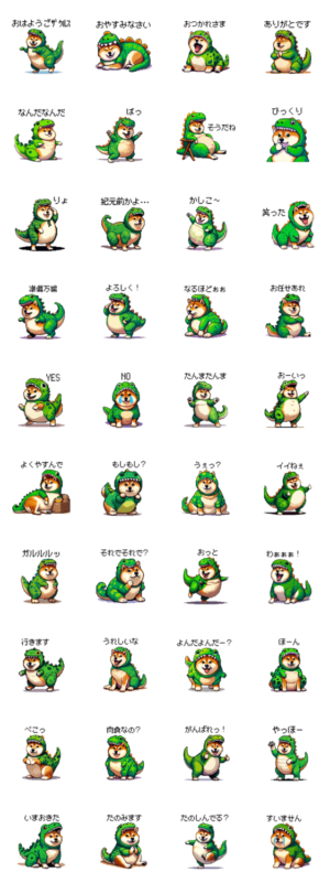 恐竜になった ふとっちょ柴犬 ガオー スタンプ画像一覧