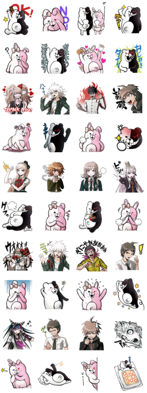 モノクマ、モノミ、超高校級の生徒たちがLINEスタンプになって登場!トークの矛盾を打ち抜いて論破しろ!使ってくれないとオシオキしちゃうよ、うぷぷぷぷ・・・。