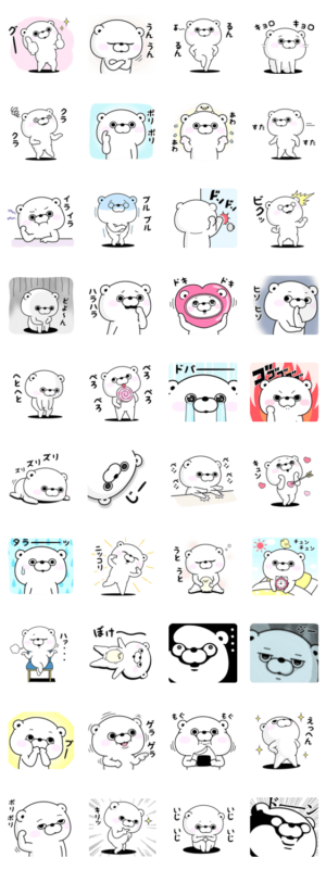 かわいいくまさんの擬音語・擬態語で会話を盛り上げるオノマトペスタンプです。ヨッシースタンプ より発売