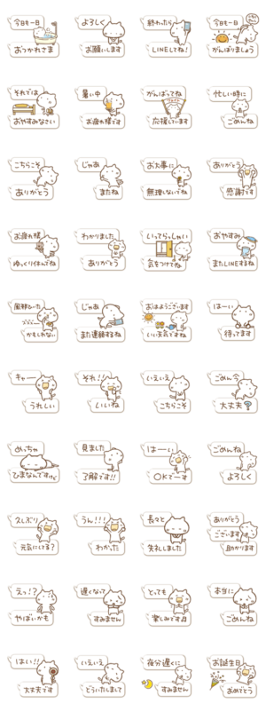 ふたつの吹き出しの間にねこっちが入って可愛くトーク。敬語あり。takopon より発売