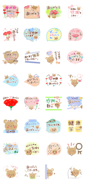 母の日・父の日・心をこめて、ありがとうの気持ちを伝える、うさぎとくまのスタンプセットです。