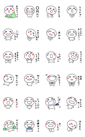 のびまるのよく使う関西弁。関西/kansai/osaka/ 大阪/大阪弁/白い/丸い/よく動く/のり/つっこみ/ギャグ/なんでやねん/しらんけど/あかん/ちゃうねん【デコスケのスタンプ】デコスケ より発売
