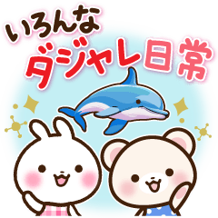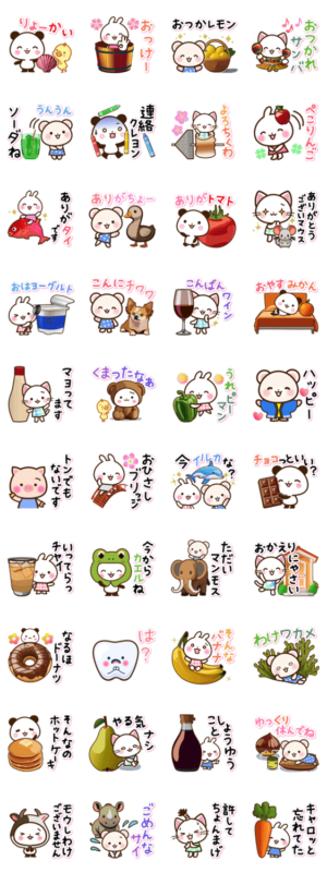 挨拶などのダジャレの日常スタンプです。かわいいうさぎ・パンダ・ひよこ・くま・ねこ・ブタなどいろんな動物が登場します♪マキたん より発売