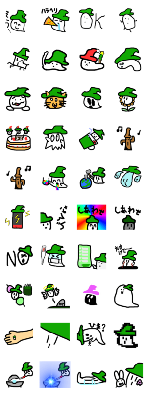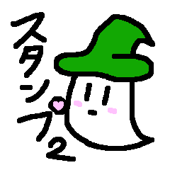 緑色の帽子を被った可愛いおばけのスタンプみどりくん より発売