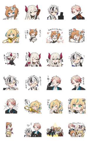 「にじさんじ」所属VTuber<えま★おうがすと エリー・コニファー 鈴木勝 セラフ・ダズルガーデン 立伝都々>によるユニット『楽団V!VO』のスタンプです!にじさんじ公式 より発売