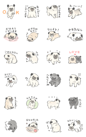 パグがいるから頑張れる。そう思います。 「おいぬがいるから頑張れる」シリーズ第11弾のスタンプです。じゅん より発売