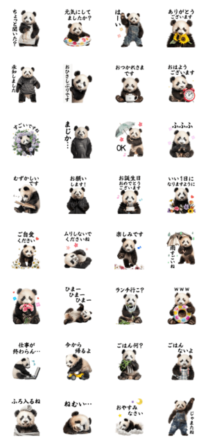 敬語・挨拶・誕生日・日常で使いやすいパンダのスタンプです
