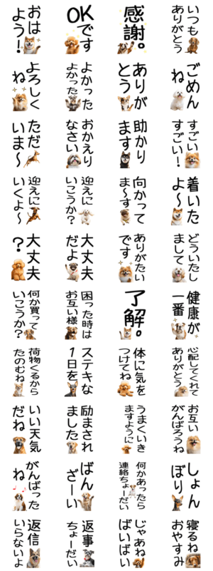 老眼の方のための、わんこスタンプパート2です!!!小さな文字が苦手な方のための、大きな文字のスタンプ。デカ文字にゃんこバージョンも好評発売中です