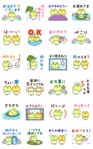雨の日や梅雨の時期に使いやすい!カエルさんたちのスタンプです♪DECOR より発売