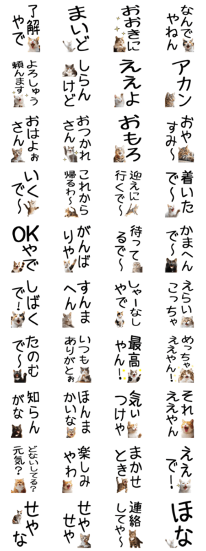 老眼の人の【関西弁】スタンプです、小さな文字が苦手な人がよく見えるデカ文字です。いろんなかわいいねこちゃん達が関西弁をしゃべってます!!!