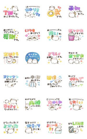 しまえながの敬語、カラフル、デカ文字動くスタンプです。かなぴ より発売