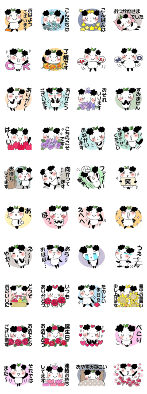 文字が大きくて見やすい、シンプルでサクッと送れる40個。ほっこりパンダちゃんの毎日便利なスタンプです。(挨拶/感謝/リアクション/泣き笑い/花いっぱい)