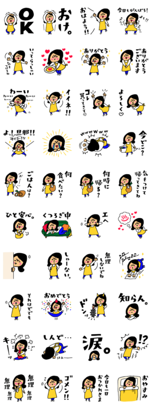 毎日使える嫁の気持ちのスタンプです♪嫁の想い、伝われー! 旦那さんとのトークや家族とのトークに♪HAL-Design より発売