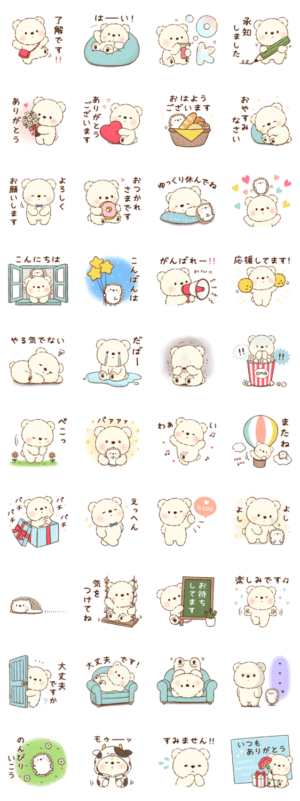 もこもこしろくまさん時々ハリネズミのスタンプです!母の日に使えるスタンプも♪naonao3 より発売
