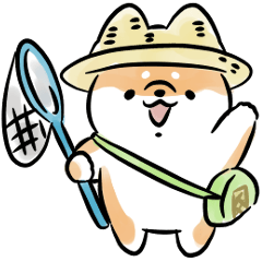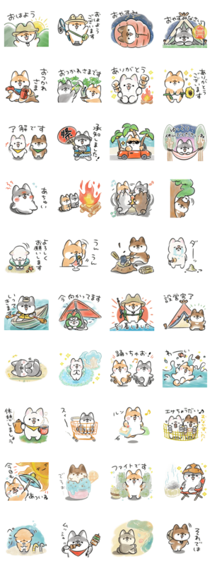 アウトドアを楽しむ夏の柴犬です ※以前無料配布された「夏に使いたい♪ほんわかしばいぬスタンプ」(16種)に新規スタンプを追加し全40種とした再リリース版ですmimori より発売