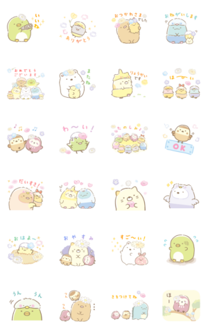 すみっコぐらしのスタンプです。送った人も送られた人も優しい気持ちになれる色使いです。