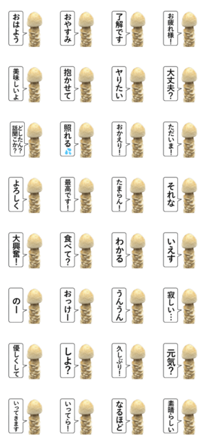 タケリタケというキノコのスタンプです。毎日使いやすい便利なフレーズを収録しています。面白い/シュール/ネタ/菌類/茸/食べ物カボス太郎 より発売