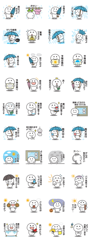 梅雨から初夏にかけての日常言葉を集めたとっても使いやすいスタンプです。天気(雨・台風・警報)など。パン より発売