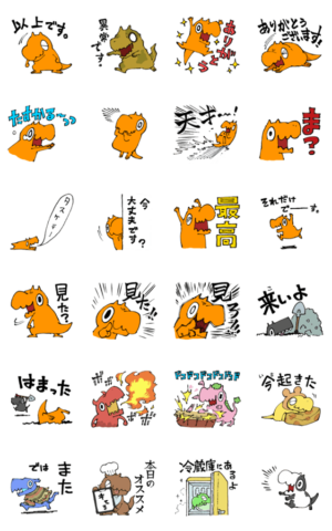 オレンジ恐竜ぎゃおすとその仲間たちのスタンプ。廾之 より発売