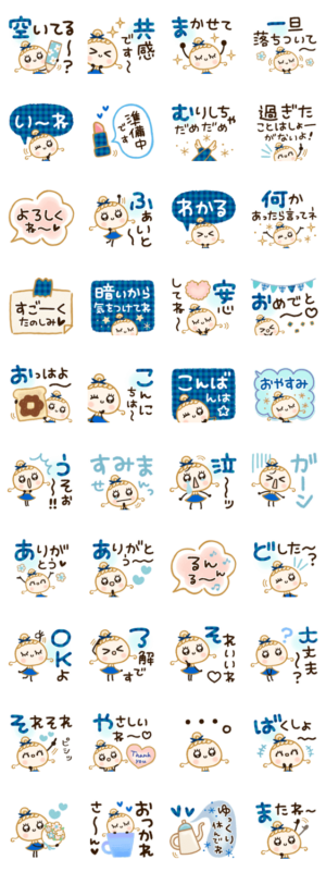 余裕たっぷり大人女子スタンプ♡キリッとクールな鮮やかブルーカラー♡小さな幸せ/感謝あさごぱん より発売