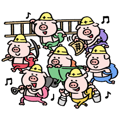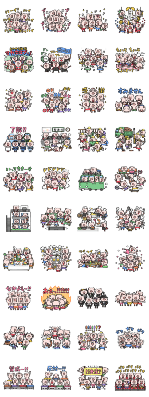 7匹の豚がリアクションすることによって、一個人の意思なのに七人の意思であるかのようなスタンプが送れます。nakata bench より発売