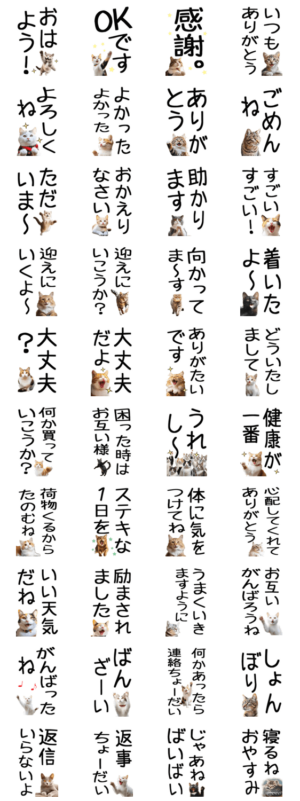 老眼の人のための、にゃんこスタンプパート2です!!!小さな文字が苦手な方達専用の、大きな文字のスタンプ。デカ文字わんこバージョンも好評発売中です!!