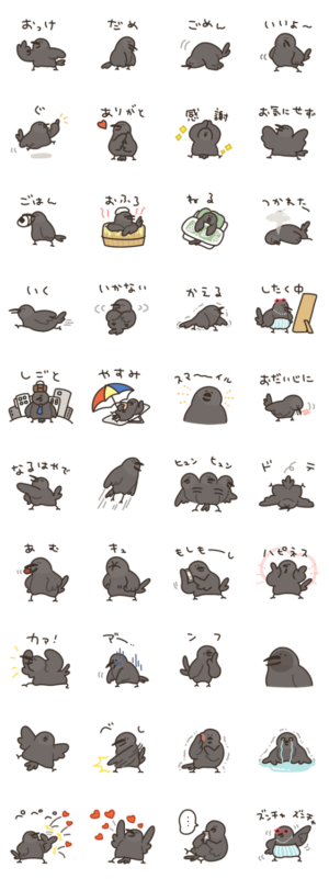 カラスのスタンプです。カア!!ぽち より発売