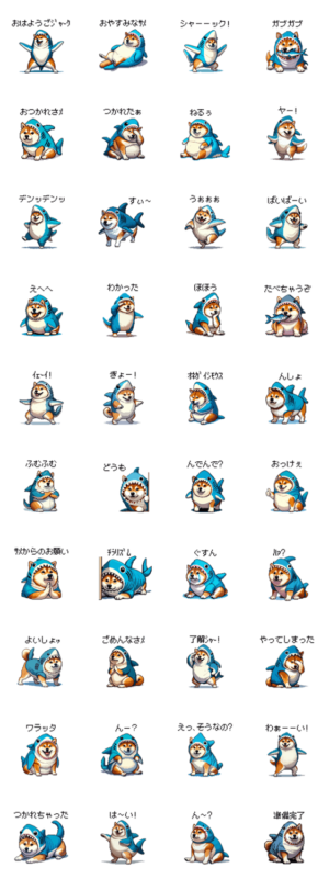 サメのふりするふとっちょ柴犬 スタンプ画像一覧