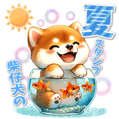 夏の陽気を感じる、ちょっぴりレトロ風な可愛い柴仔犬スタンプが登場!日常にほっこりとしたひとときを添えてくれますヨ!Masajii より発売