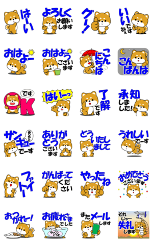 豆柴の飛び出すスタンプです。 見やすいでか文字で、敬語多めです。ヒサケイプリン より発売