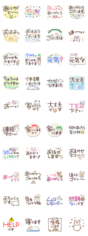 調子どう?元気?大丈夫?など、家族・友達・仲間との連絡・自分の状況報告に便利なスタンプセットです。~気づかい・体調・一人暮らし・離れて暮らす家族・安否確認~