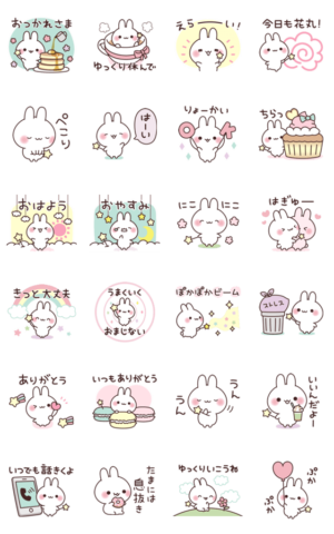 パステルカラーがとってもキュート!気遣い言葉を中心に、挨拶やお返事など、疲れた気分を和ませてくれる温かいうさぎのスタンプです♪(動くスタンプのリメイクです)