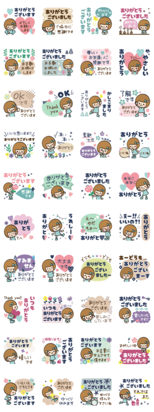 いろんな「ありがとう」詰め合わせパック♡使いやすい言葉が盛りだくさん!おかっぱ・リボン・女の子・大人・可愛い・北欧・くすみカラー・使いやすい・長文・敬語