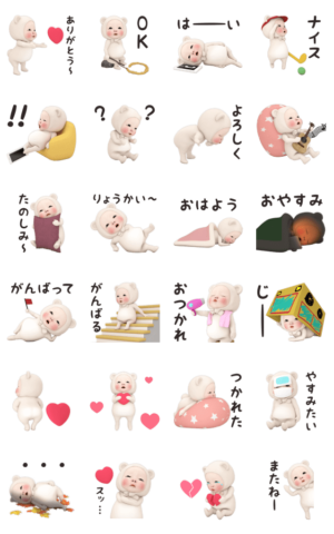 ゆるりとだらりと可愛く動くクマタオルのポップアップスタンプで気持ちを伝えよう!