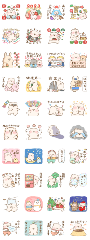 年末年始や冬に使いやすいスタンプも入ってるよ♪ 販売期間:2023/1/31 10:59まで ※1/3(火)23:59までの購入でともだちはくまおみくじがもらえます