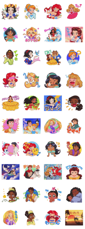 ディズニープリンセスたちが、日本の90年代アニメーション風の懐かしいスタイルで登場♪トークで使えばちょっぴりノスタルジックな気持ちになれちゃうかも?