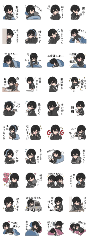 友達、家族、カップル、大切な人と使えるスタンプです!黒パーカーくんの第10弾紫月るな より発売