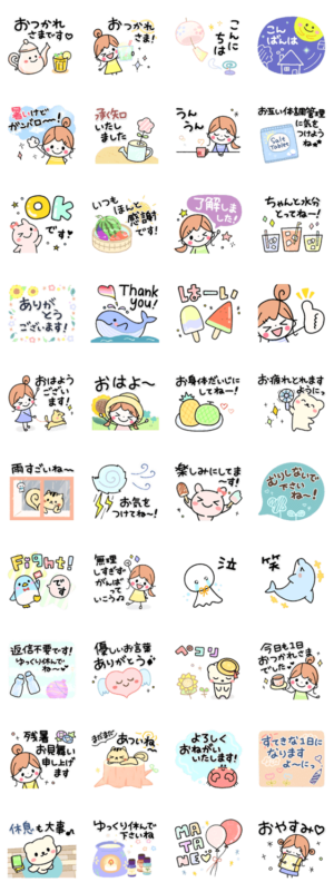 大人かわいい♡ナチュラルテイストスタンプの夏Ver。夏らしい絵柄の日常ことばのセットです♪ 敬語/女性/女の子/挨拶/大人ガーリー/シンプル/毎日 ※修正remakeVER