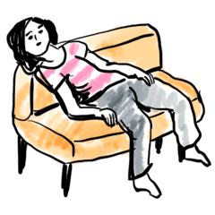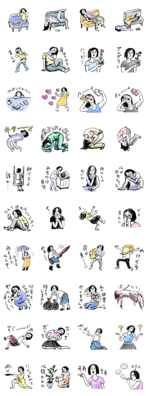 疲れ切っている全女子のための負のオーラ全開スタンプです。シュール女子、ママ、子育て、働く女性、全身疲労、四十肩、五十肩、腰痛、疲労、何もしたくない。イッレ・コスヤ より発売