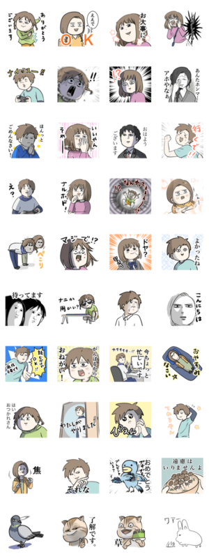 コミックエッセイ えむふじんがあらわれたに登場するエムモト家のスタンプですえむふじん より発売