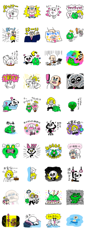 ひと昔前の手書き感溢れるテイストが最高!退社するスタンプは便利で多用してしまう。