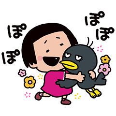 ちこちゃんをもう少し地味な親しみある近所の子にした感じのスタンプ。