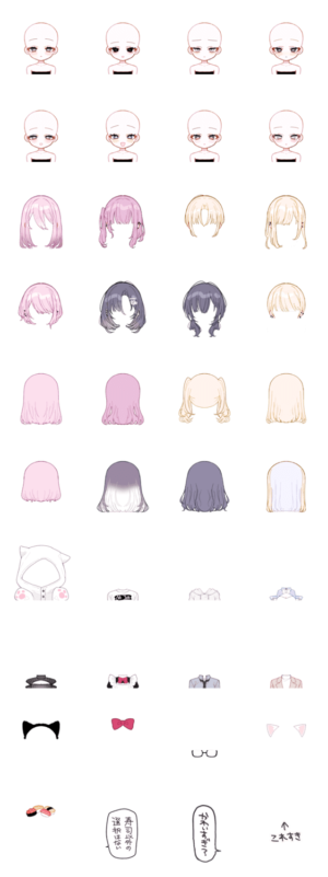 スタンプを組み合わせて自分好みの子が作れるスタンプです 文字やセリフと合わせて日常的にも使えます!み より発売